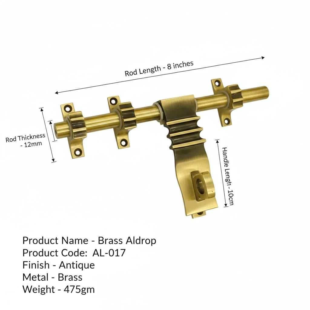 This product is also known as Barss Aldrop, L-Drop, AL-Drop, Kunda, Arla and Tadi. This product is made of pure brass through sand casting process. We use this product to close the door of our house. This is a very strong and durable solution for the security of our house.