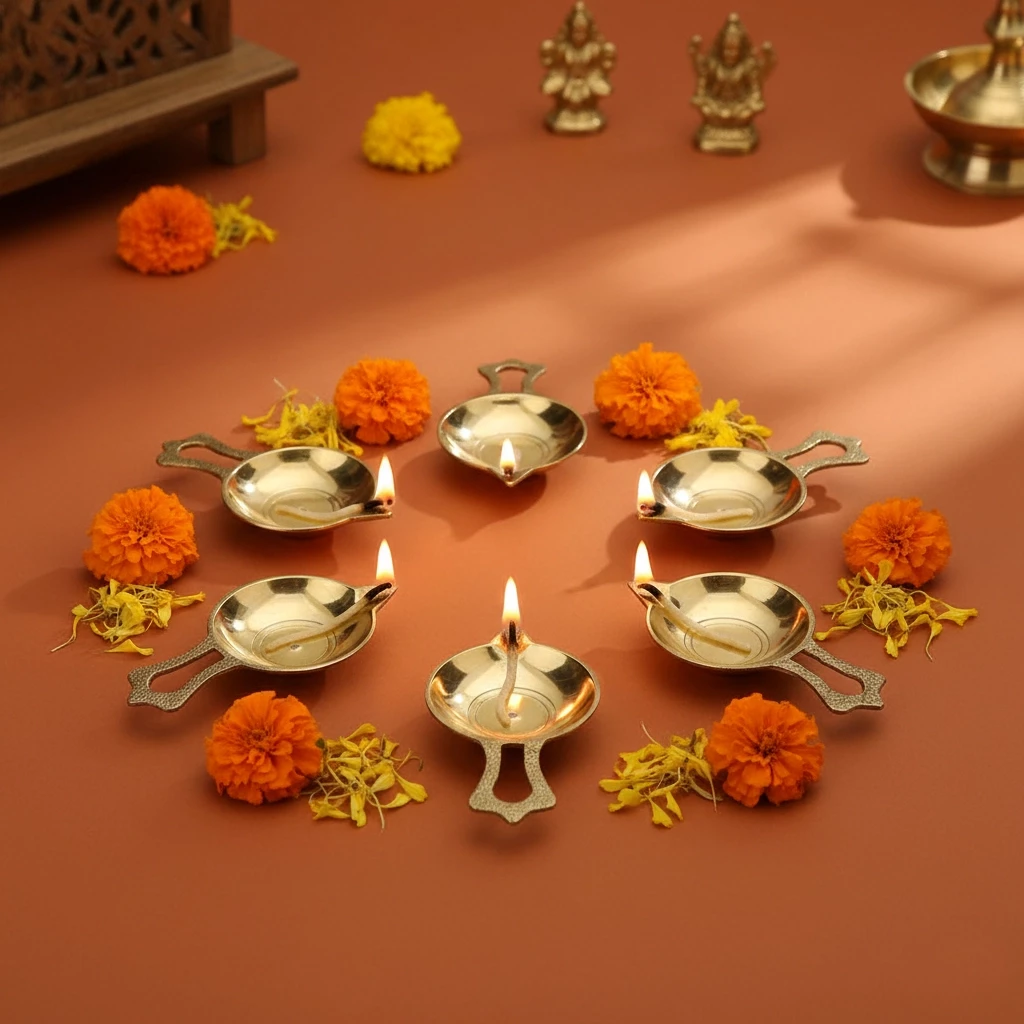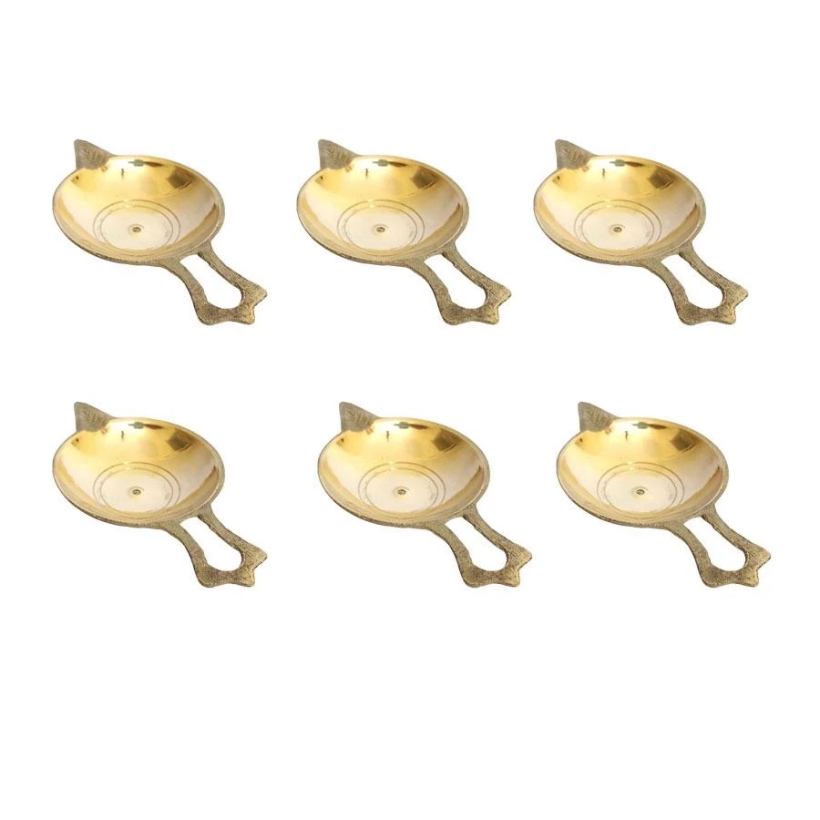 Bring warmth, light, and tradition into your spiritual space with this elegant Brass Diya Set (BDY-003). Crafted from high-quality brass, these mini oil lamps feature a compact round bowl with a classic open handle for easy use during aarti or daily prayers. The brass finish adds a rich golden shine, making them ideal for festive décor, rituals, or spiritual gifting. Each diya is lightweight and easy to handle, making them perfect for use in mandirs, pooja thalis, or travel kits. With a wide oil-holding surface and steady base, these diyas are both practical and beautiful.