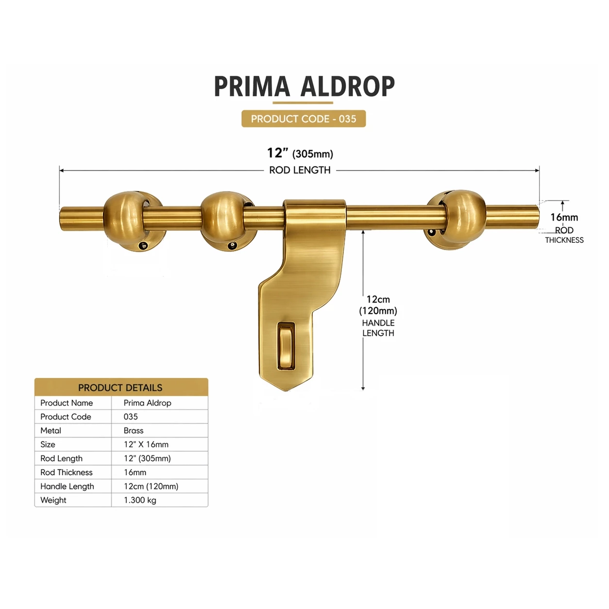 Upgrade your door security with the Prima Aldrop (Product Code: 035), crafted from high-quality solid brass for superior strength, durability, and a premium finish. Designed for both modern and traditional doors, this 12-inch heavy-duty aldrop ensures smooth operation and long-lasting performance.