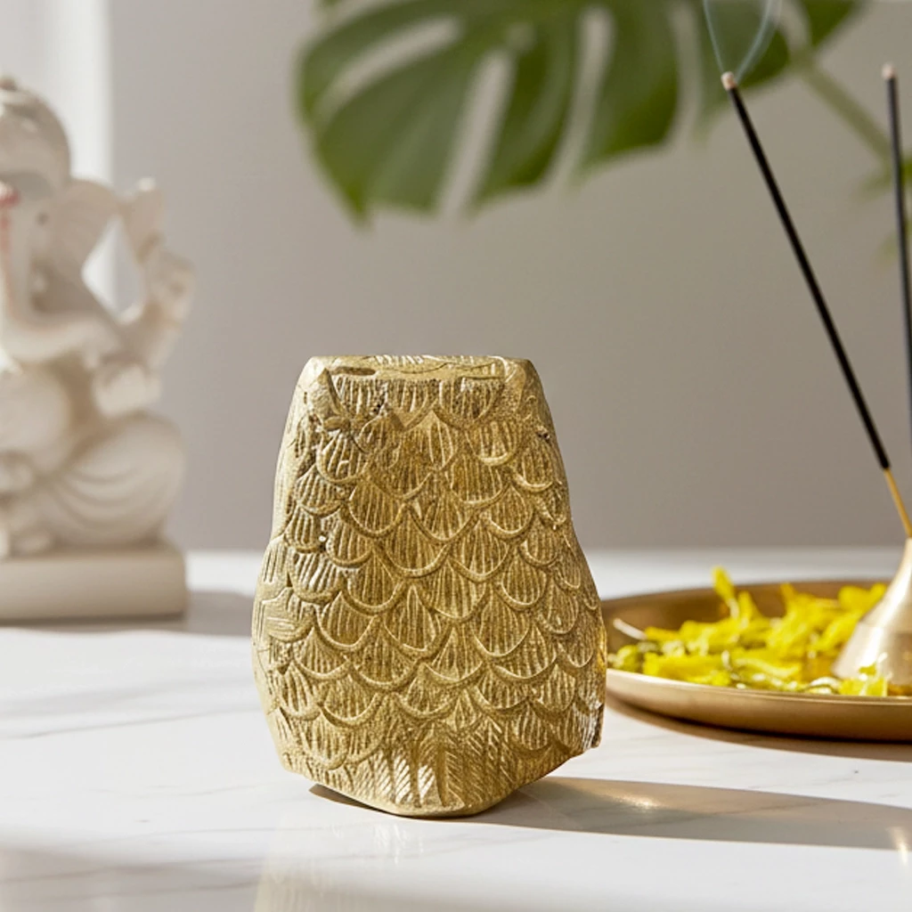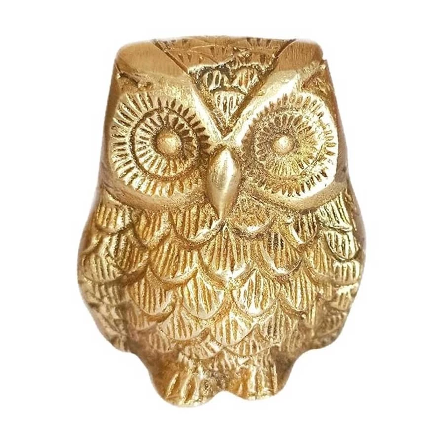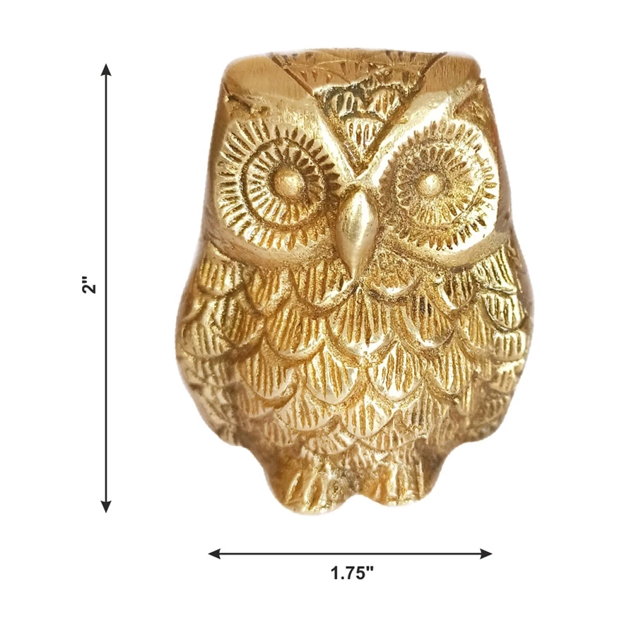 Introduce elegance, insight, and spiritual protection into your space with this Small Brass Owl Figurine — a compact yet powerful symbol of wisdom, awareness, and prosperity. Beautifully handcrafted from pure brass and finished with a radiant lacquer polish, this owl stands out with its intricate detailing and ethnic charm. In Vastu Shastra and Feng Shui, owls are known as guardians of truth and knowledge, believed to ward off negative energy, sharpen intuition, and enhance financial stability. This petite owl, measuring just 2 inches high and weighing 152 grams, is perfect for small spaces like work desks, pooja shelves, bedside tables, or home entrances. Its finely carved feathers, deep-set eyes, and polished surface showcase the remarkable skill of Indian artisans. Despite its size, it leaves a strong impression — making it not just a décor piece, but a spiritual asset for your space. Whether you're decorating your home, energizing your office, or gifting someone a token of good luck and wisdom, this Small Brass Owl delivers both meaning and beauty in a timeless brass form.
