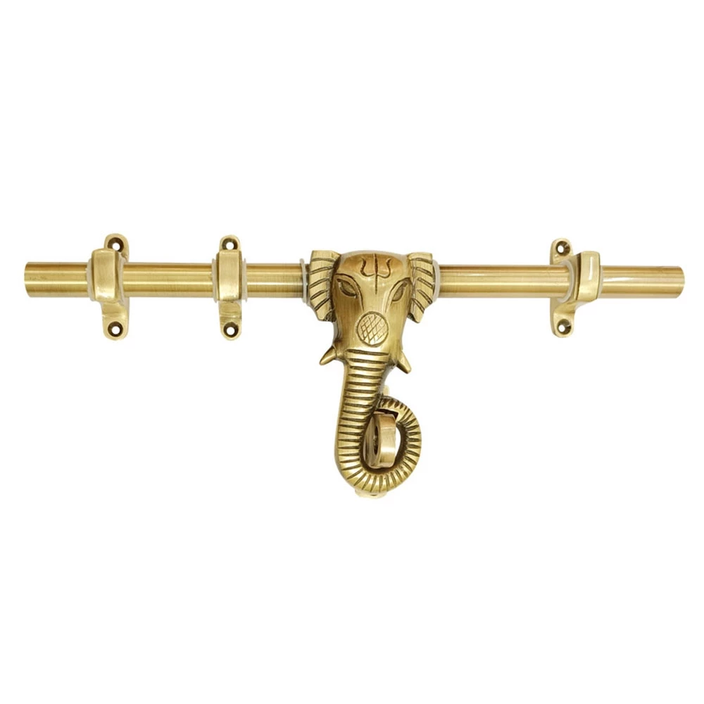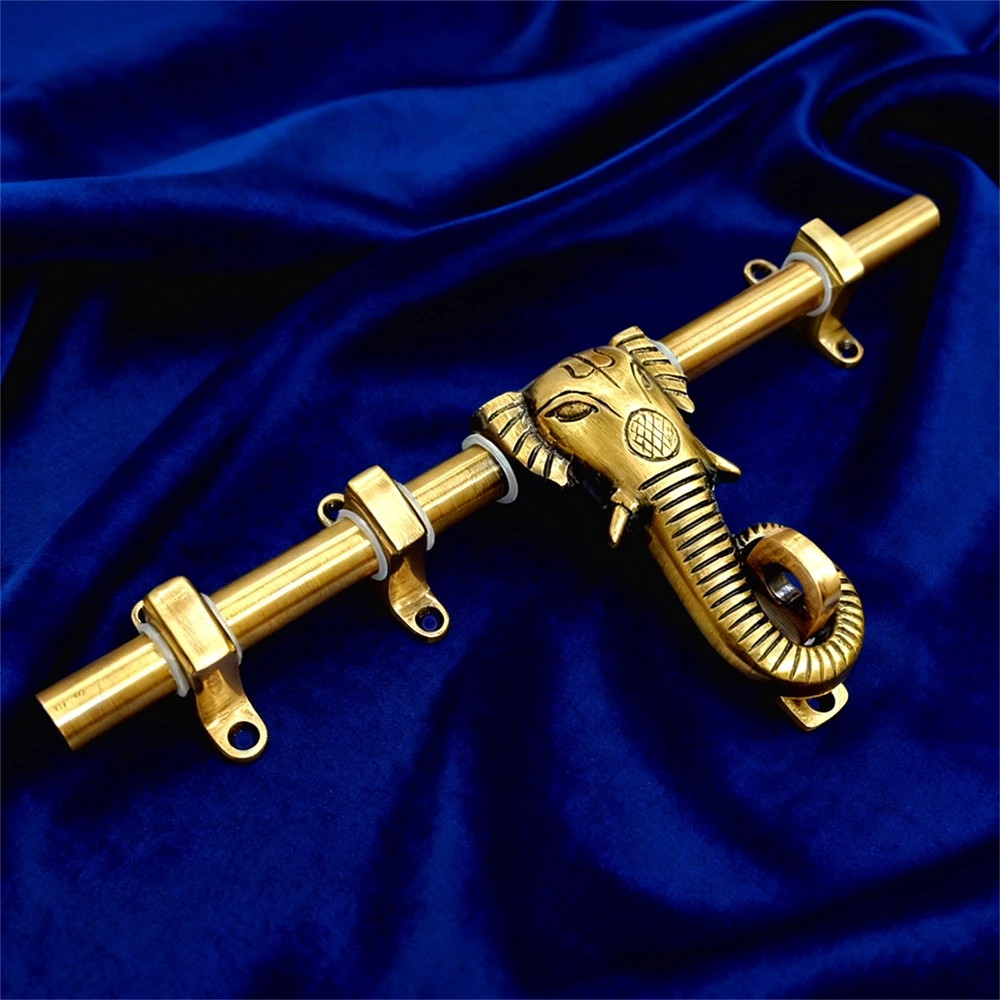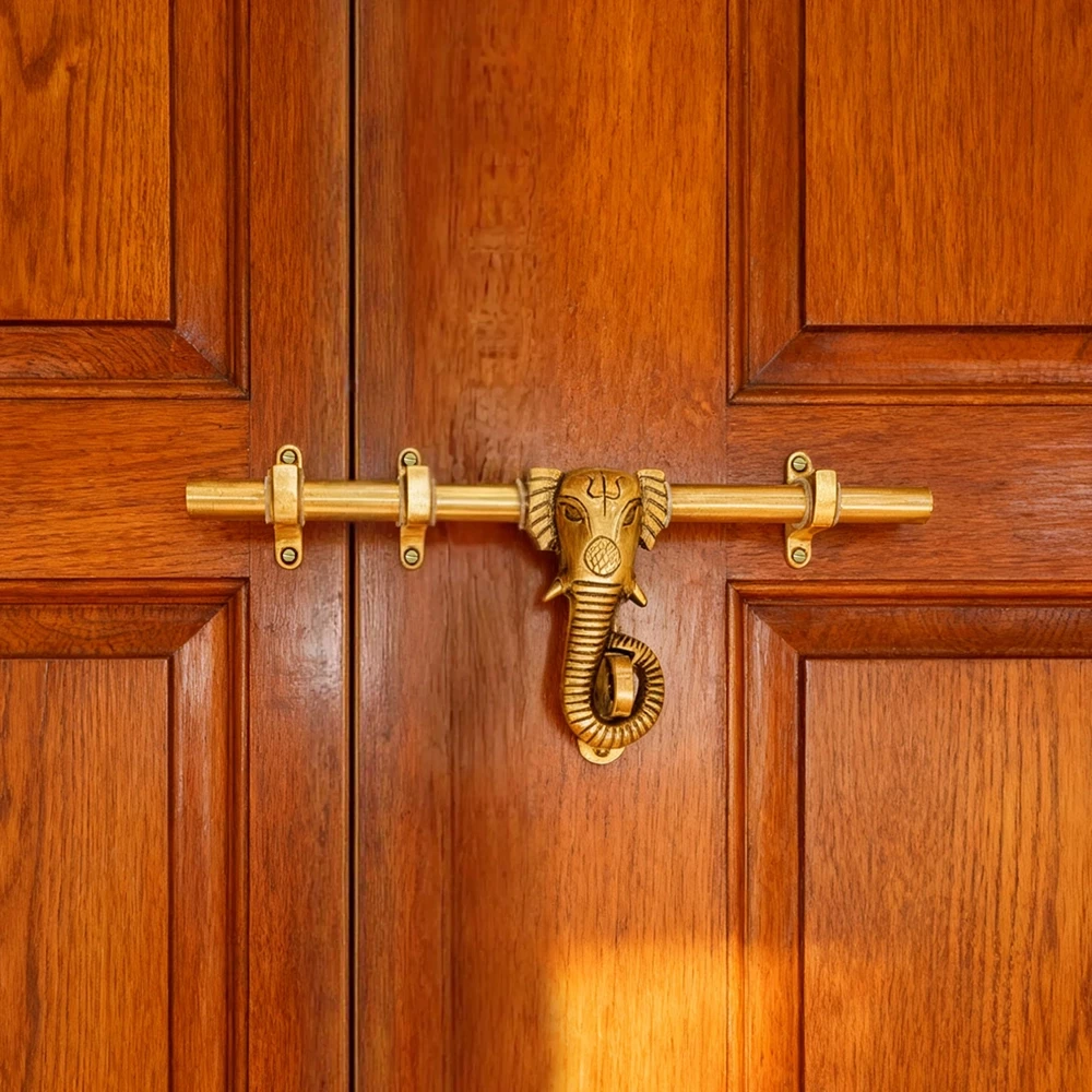 Add a touch of traditional elegance to your home with this handcrafted brass elephant design door aldrop. Designed by skilled artisans, this piece blends functionality with artistic charm. The central elephant motif is a nod to Indian heritage and brings a divine aura to your entrance. Perfect for main doors, temples, or heritage-style architecture, this aldrop is not just a door accessory – it's a statement piece.