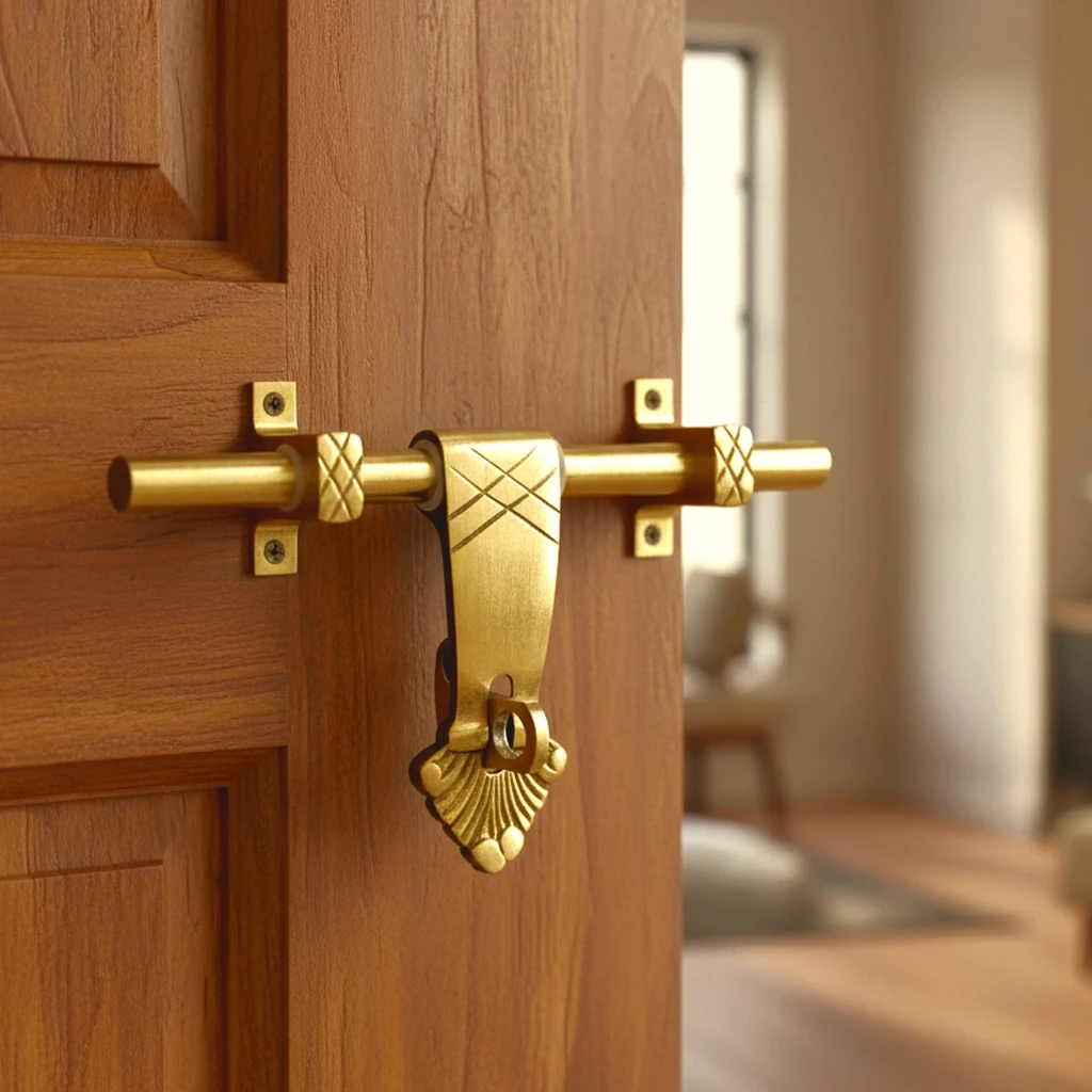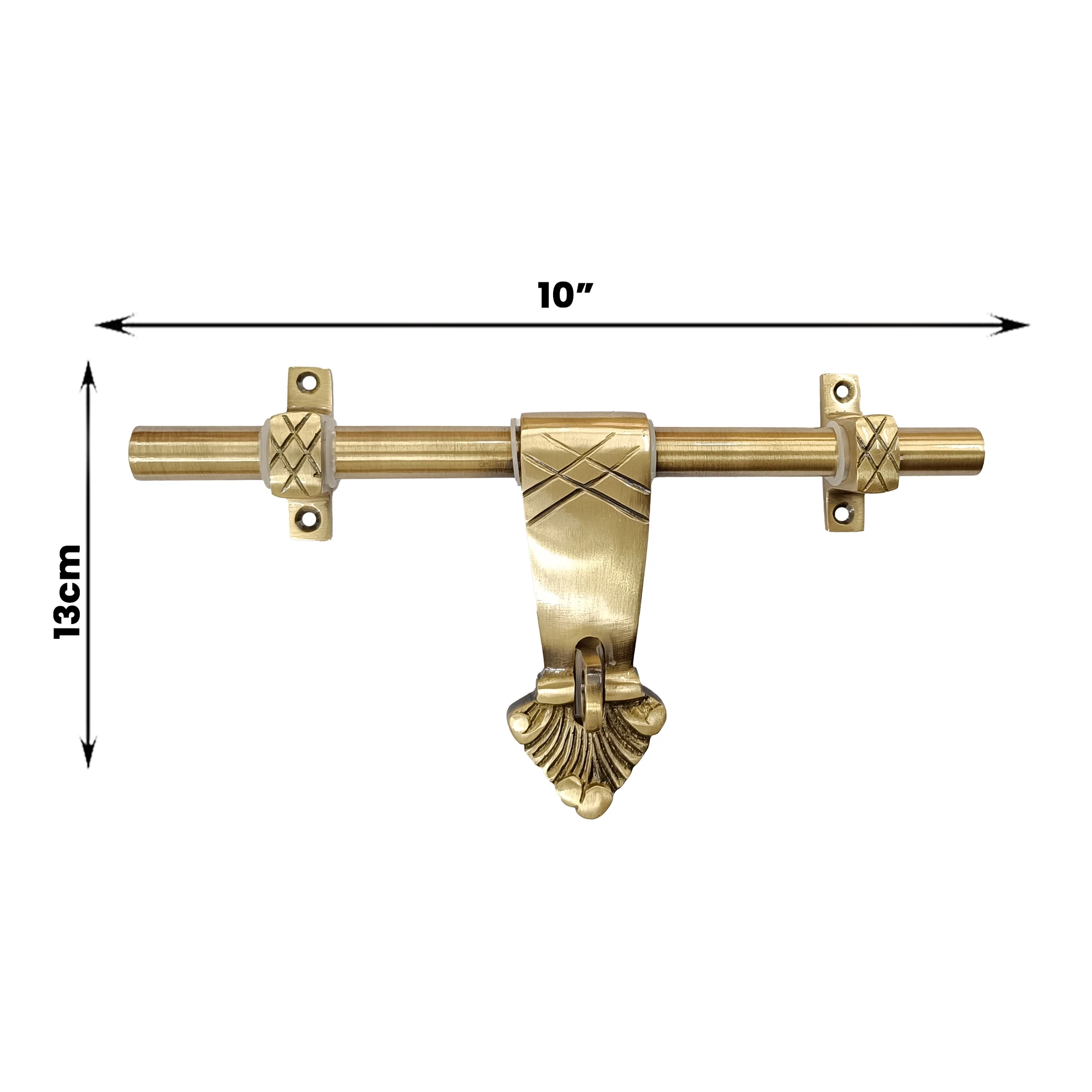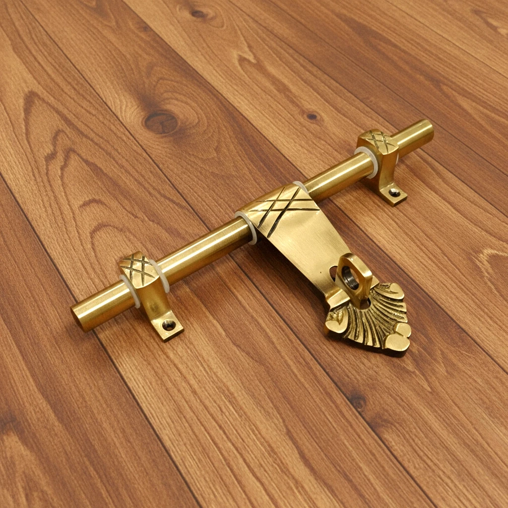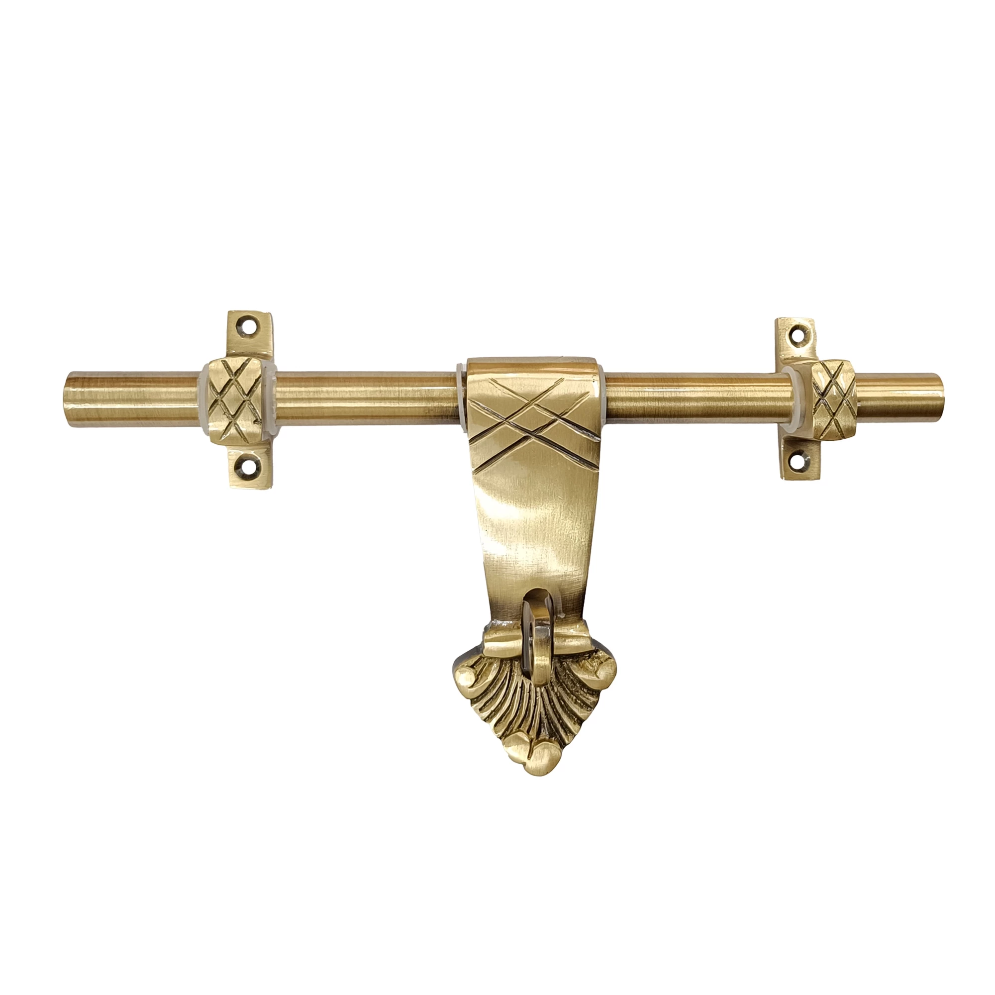 Bring home the perfect blend of strength, durability, and elegance with this Premium Brass Aldrop (AL-007). Crafted from high-quality brass, this aldrop features a 16mm thick rod and 10-inch length, ensuring long-lasting security for your doors. The antique finish adds a timeless charm while the ergonomically designed 13cm handle provides a comfortable grip. With a solid weight of 817gm, it promises sturdiness and reliability, making it ideal for both main doors and interior wooden doors.