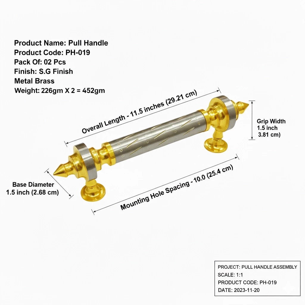 Upgrade your doors with this elegant Brass Pull Handle (PH-019), designed with a premium S.G finish for a sleek and modern look. Crafted from high-quality solid brass, this handle ensures strength, durability, and long-lasting shine. With its stylish design and comfortable grip, it is perfect for enhancing the beauty and functionality of wooden, metal, or glass doors in homes, offices, or commercial spaces.