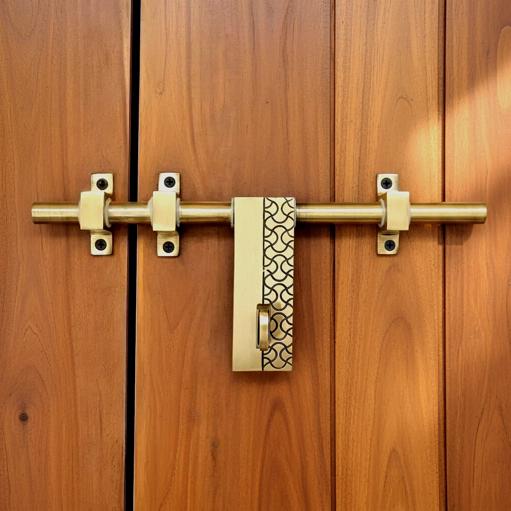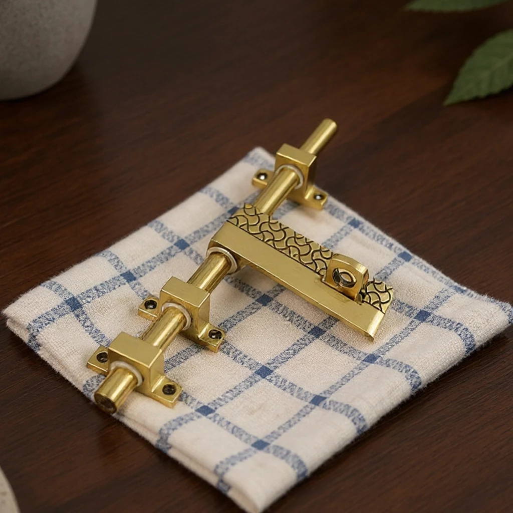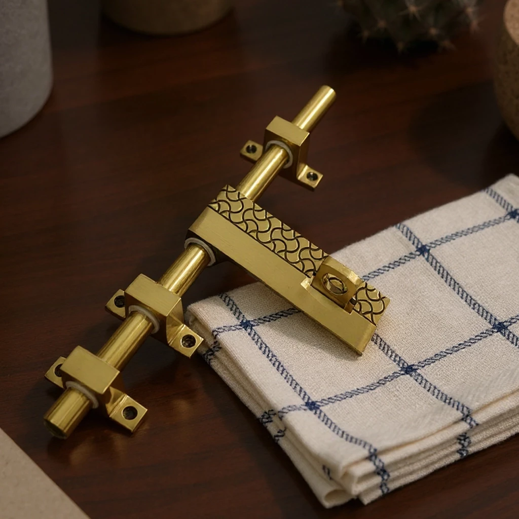 The Brass Aldrop (Product Code: AL-026) is a premium-quality door accessory crafted from durable brass, designed to combine strength, elegance, and long-lasting performance. Featuring a sturdy 16mm rod thickness and a 12-inch rod length, this aldrop ensures reliable security while adding a touch of traditional charm to any wooden or metal door. Its antique finish enhances the classic appeal, making it suitable for both modern and heritage-style interiors. With a handle length of 11.5 cm, it offers a comfortable grip and smooth operation for everyday use. Weighing 984 grams, this solid brass aldrop reflects excellent craftsmanship, ensuring durability, rust resistance, and a rich look that elevates your door décor. Perfect for main doors, pooja room doors, or premium home entrances, this aldrop is a blend of functionality and timeless design.
