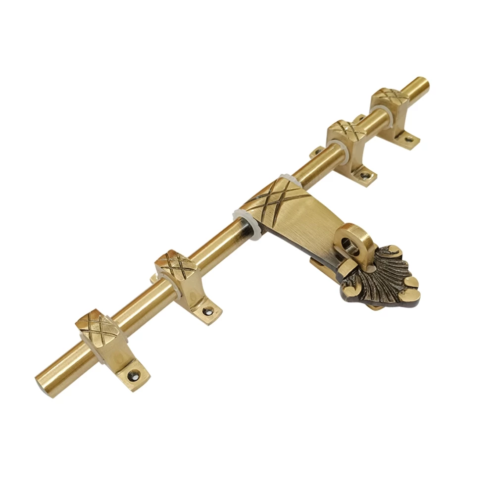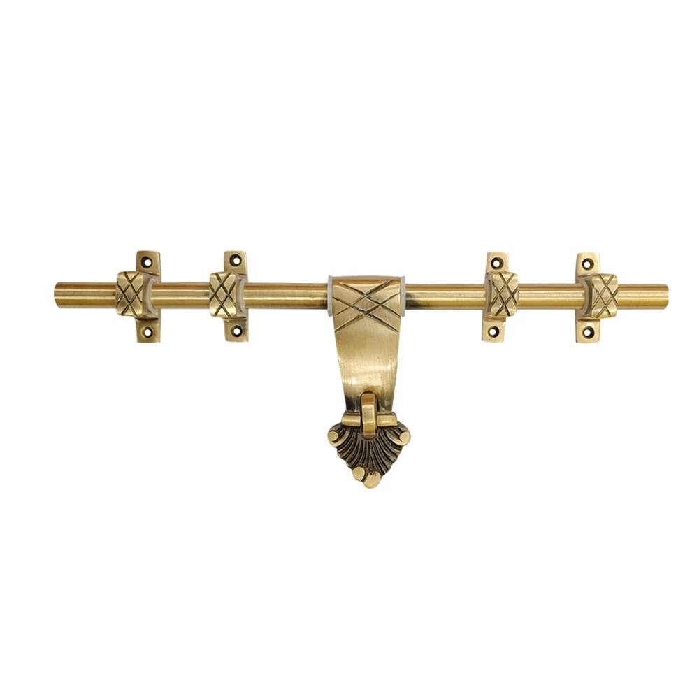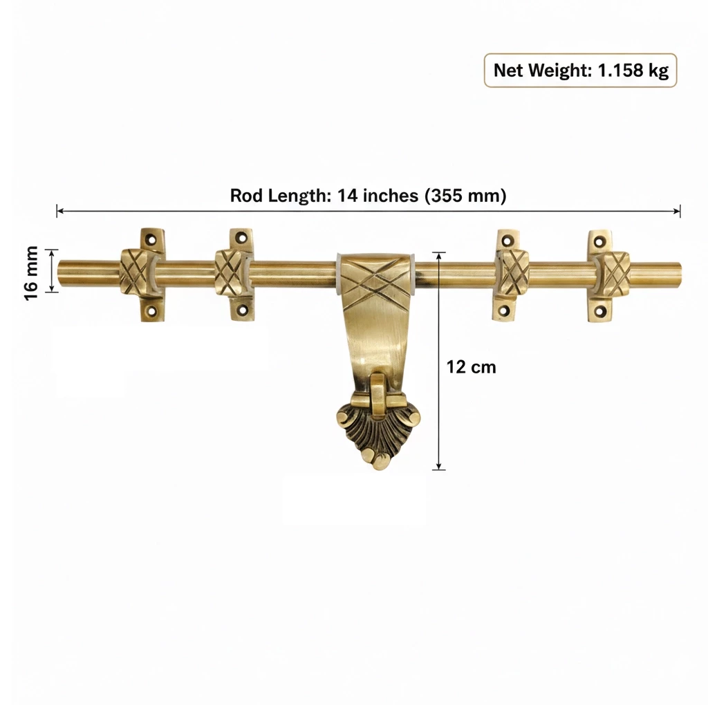 The 14-inch long, 16mm thick solid brass rod ensures strong locking performance, while the 12 cm handle offers a comfortable grip for smooth operation. Its heavy weight of 1.158 kg reflects the solid build quality, providing durability and resistance to daily wear. The antique finish adds a rich, traditional look that complements wooden and designer doors perfectly.