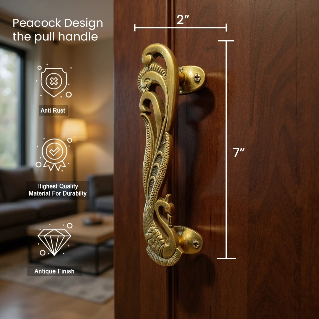 Add timeless charm to your home with the PH-013 Brass Pull Handle. Designed for durability and visual appeal, this 7-inch handle features a refined antique finish, ideal for traditional doors, pooja rooms, cabinets, and wooden panels.