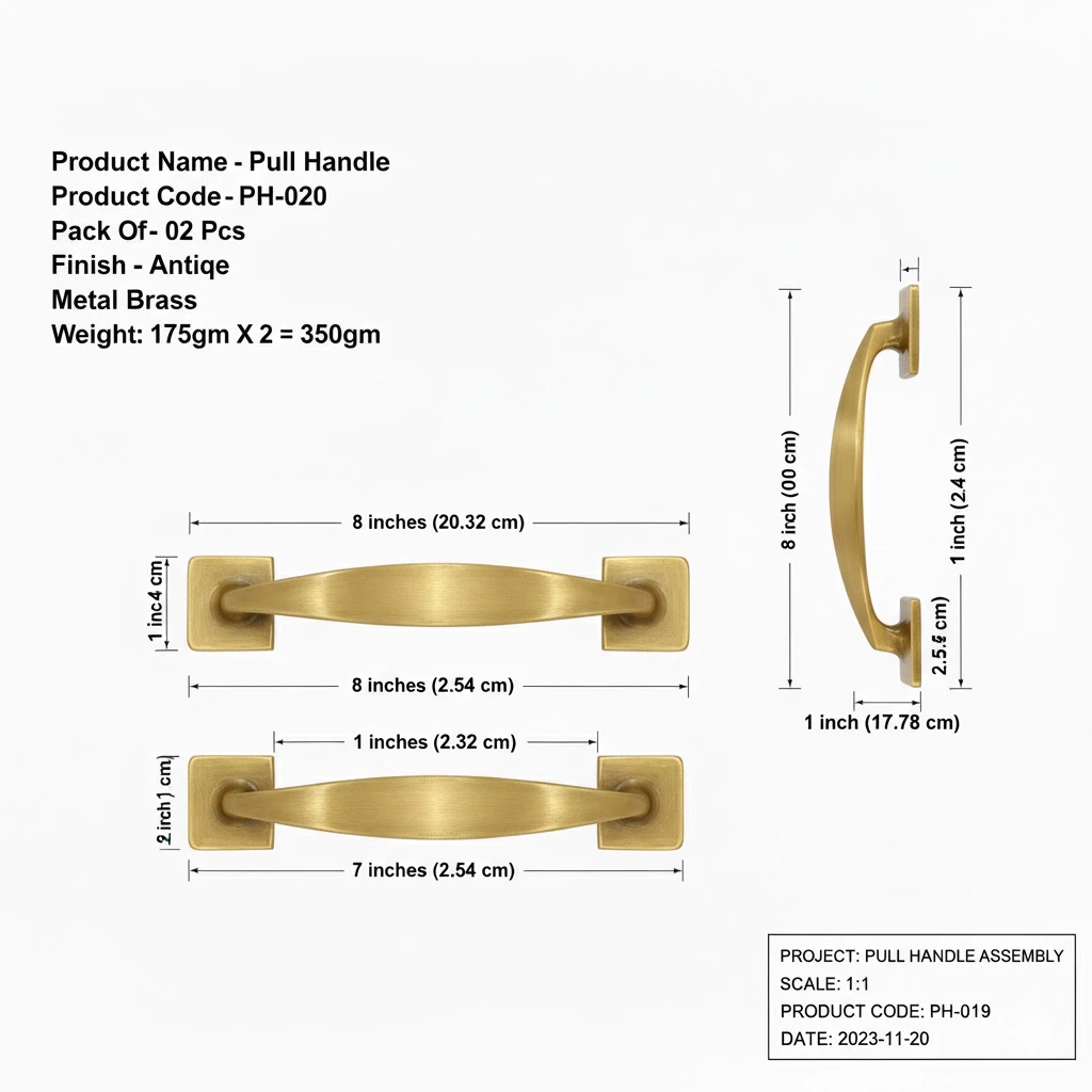 Upgrade your doors with this premium Brass Pull Handle designed in an elegant antique finish. Crafted from solid brass, it combines durability with timeless style, making it ideal for wooden doors, cabinets, and wardrobes. Its smooth grip and sturdy construction ensure both functionality and sophistication for your interiors.