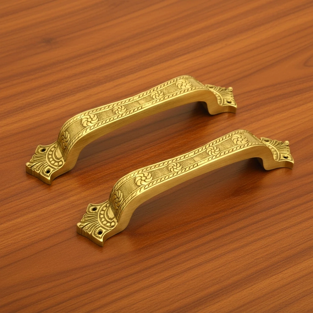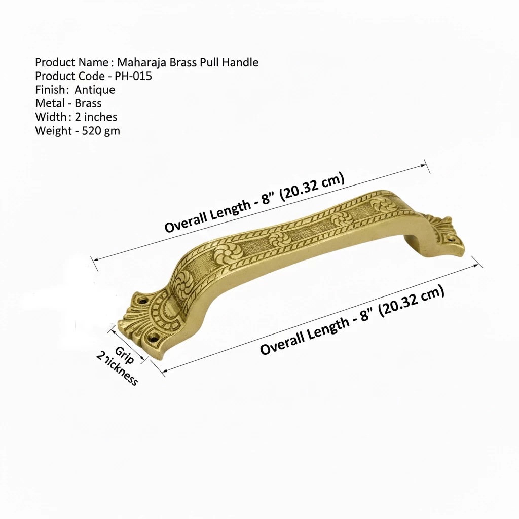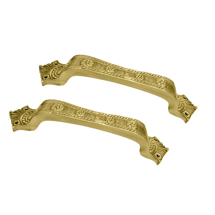 Inspired by classic Indian design, the Maharaja Brass Pull Handle is a statement piece for your home. The detailed carvings and rich antique finish give it a truly luxurious feel, while the solid brass construction guarantees both beauty and strength. This 8-inch handle is the perfect accent for traditional or rustic décor, instantly transforming cabinets, wardrobes, and doors with its timeless style and superior craftsmanship.