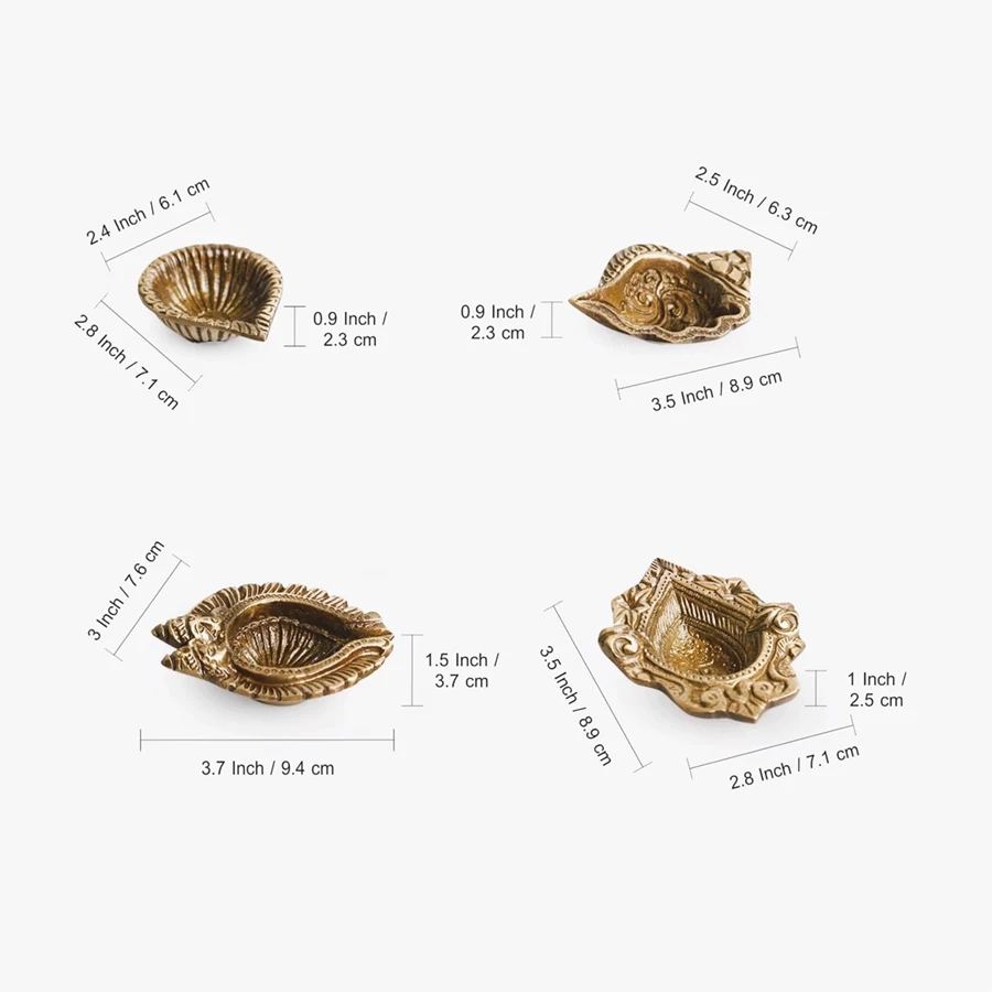 Add a touch of traditional charm and elegance to your home with the Brass Exotic Diyas Set of 4. Crafted from high-quality brass, this set of intricately designed diyas brings a regal glow to your space. Each diya is meticulously handcrafted to showcase unique patterns and detailing, making them not only functional but also beautiful decorative pieces. The rich brass finish gives them a timeless appeal, perfect for any occasion. Ideal for lighting during religious ceremonies, festivals like Diwali, or as a charming accent for your home decor, these diyas emit a warm, inviting glow, creating a peaceful and spiritual atmosphere. The sturdy design ensures stability while the graceful shapes and intricate details make them standout pieces on mantels, tables, or in puja rooms. This Brass Exotic Diyas Set of 4 is a perfect way to enhance your home’s ambiance and make any event feel more special. Whether as a thoughtful gift or a personal decorative addition, these diyas bring beauty, tradition, and light to every corner of your home.